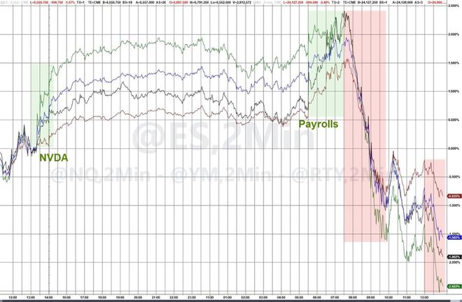 昨晚,英伟达较好的财报伴随着“金发姑娘”式的非农数据(新增就业超出预期但失业率上升),可谓一举两得。美国三大股指集体高开,标普500指数上涨略超1.4%,纳斯达克指数上涨2.18%。但截至交易日收盘,整个股指大幅下跌,标普500指数收盘下跌1.56%,纳斯达克指数暴跌2.16%。 这种情况只发生过两次:2020年4月7日(新冠疫情影响后)和2025年4月8日(特朗普关税影响后)。英伟达的积极表现是昙花一现,也是高开后下跌:盘中上涨超过5%后,收盘下跌3%。费城半导体指数早盘大幅上涨,收盘上涨近4.8%。 分析师认为,当好消息未能推动市场走高时,它本身就强烈的看跌信号传来,促使美股出现大规模获利了结和技术性抛售。 美国股市出现自四月关税风暴以来最大的盘中反转。开盘前,非农就业报告显示新增就业岗位11.9万个,超出市场预期。但与此同时,失业率预计将升至4.4%,为四年来最高水平。 “喜忧参半”的数据一方面表明劳动力市场依然具有韧性,另一方面失业率上升引发了对未来降息的预期。 早盘,受“金发姑娘”非农数据和英伟达强劲财报提振,三大股指集体高开。午盘,比特币美股跌破9万美元关口,当日跌幅超过5000美元,引发高风险资产抛售。此外,库克州长警告称,私人信贷市场的风险可能会蔓延阅读整个金融体系。被称为“新美联储新闻社”的著名财经记者尼克·蒂米罗斯撰文称,9月非农就业报告不太可能帮助美联储就下个月是否暂停降息达成协议。乐观情绪突然转变,美股确实上演了“高开低走”的大逆转。美股三大股指均下跌,并继续扩大跌幅。最终标普500指数收涨103.40点,涨幅1.56%,报6538.76点。道琼斯工业平均指数收盘上涨 386.51 点,涨幅 0.84%,报 45,752.26 点。纳斯达克指数收盘上涨486.181点,涨幅2.16%,至22078.048点。 市场质疑nvidia:“铲子卖家”不会说山里无金。尽管英伟达第三季度营收同比增长 62% 至 570.1 亿美元,并为第四季度提供了强有力的指引,但投资者对人工智能的担忧valuation bubble have not completely disappeared.英伟达公布的盈利高于预期,一度推动股价上涨 5%,导致该公司股价在周四盘中回落。财报发布后,包括AMD、博通在内的AI生态系统相关股票初步提振,但随后大盘再次下跌。 NVIDIA CEO黄詹勋在Call Call上直言:关于AI泡沫有很多讨论,但从我们的角度来看,你看,这是一个完全不同的故事。然而,一些市场观察人士认为这种防御是不可避免的。分析人士认为,这就像淘金热时期的五金店老板从不告诉淘金者“山里确实没有金子”一样。即使AI热潮存在泡沫,作为最大的利益,黄仁勋也不会承认。 Investors' concerns about the AI bubble were not focused on this quarterthis or the next few residences, butif capital expenditures can continue to grow in a year or two.大投资最终必须产生回报。历史提供了值得借鉴的例子。互联网泡沫时期,思科作为全球网络设备提供商,是最重要的“卖铲子”公司。虽然思科的营收增长没有达到英伟达现在的水平,但仍然相当强劲,甚至再次加速,直到互联网泡沫破灭后跌入悬崖。英伟达目前宣布季度股息为 1 美分。按照盘前股价 195.60 美元计算,需要近 4900 年的时间才能实现盈利。分析师认为,如果AI的投资真的是一个不稳定的泡沫,黄仁勋亲自承认这一点并不能令人信服,也不能从英伟达目前的业绩或短期来看增长放缓的路径将决定AI主题股的走势,但因果关系。nship can be just the opposite - stock price fluctuations affect investment decisions.不要错过2026年主要事件和日程,金融人士必备⭐明星华尔街新闻,精彩内容不要错过——本文不构成投资建议,不代表平台观点。 The market is risky and investment needs to be cautious.请您做出独立的判断和决定。 If you think it looks good, please click "Looking"