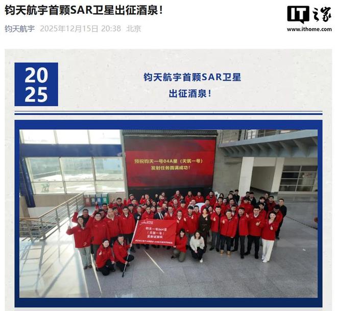IT之家12月16日报道 军天宇航昨天在一份文件中宣布,昨天在北京举行了军天104A(天柱一号)的发射仪式。该卫星预计将于下个月从酒泉卫星发射中心发射升空,计划为全球用户提供高精度、高频遥感数据服务。据介绍,军天104A卫星(天柱一号)是军天航天自主研制的首颗X波段SAR卫星。它专为建筑、结构和基础设施市场而设计。它的空间分辨率为0.5米。它带来了多项关键技术的突破,可连续采集高分辨率、长期序列雷达数据。 IT之家的骏天104A卫星(天柱一号)的五个主要技术优势如下: 与其他宋型卫星相比,在达到相同性能的情况下,卫星重量可减轻20%-30%; t通过一体化结构热控设计,卫星SAR有效载荷可在单轨道运行长达8分钟;通过开源综合信息系统,结合卫星星服务管理和高性能计算平台,星上算力最大可达1200TOPS;具有单星干涉成像能力;卫星使用寿命超过5年。公开信息显示,北京君天航天科技有限公司成立于2021年12月31日,总部位于北京。是以商业卫星研发与制造为核心业务的国家高新技术企业。目前已完成数亿元B轮融资。公司全面布局高分辨率光学、合成孔径雷达成像(SAR)、低轨通信等卫星产品,具备大型卫星系统的设计、仿真和建造能力。卫星星座。