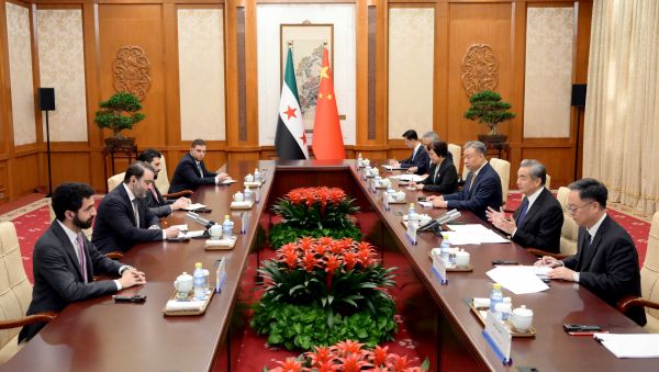 11月17日,外交部发言人毛宁主持例行会议。有记者问有关叙利亚过渡政府外长访华的问题。毛宁表示,叙利亚过渡政府外长正在中国访问,王毅外长今天上午与其举行了会谈。王毅外长强调,中叙同为发展中国家,拥有广泛共同利益。中方奉行对全体叙利亚人民的友好政策,尊重叙利亚人民的自主选择。双方要坚持相互尊重彼此核心利益,坚持互不干涉内政,弘扬世代友好的传统,校准中叙关系方向,推动两国关系尽快恢复正常。图为会议现场。外交部长王毅强调,“东突”伊斯兰运动是一场国际性的国际冲突。联合国安理会承认的国际恐怖组织。叙利亚承诺不允许任何实体利用叙利亚领土损害中国利益。中方对此表示赞赏,希望叙利亚采取有效落实措施,为中叙关系稳定发展扫清安全障碍。王毅外长表示,明年是中叙建交70周年。双方应逐步恢复两国各层级、各领域交往。欢迎叙利亚参与共建“一带一路”,加强在联合国中阿合作论坛等多边框架下合作。中方愿与国际社会合作,为促进叙利亚安全稳定作出贡献。会谈后,双方发表了中叙外长联合声明。我们将根据具体情况发布详细信息。 (总台央视记者 赵超义)