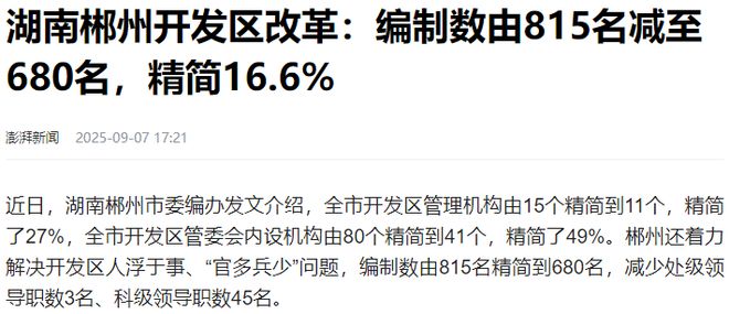 5月-Set:Yu FEI 01机构员工改革,该改革是2020年开始的组织的结构性改革。最新消息是湖南省发展区的Shanxi Datong经济和技术发展区和Zhejiang Province Lishui City的Yunhe County完成了暴力拆除。 《南方日报》宣布,八月,Shanxi Datong经济和技术发展区进行了新的优化:代理总数的总数从335降至298,减少了11%;部门级别的职位数量从46下降到37个,减少了20%;部门部门级别的职位数量从74下降到69个,减少了6%。对于那些尚未值班的人,经济和技术发展区将提供诸如及早撤职,辞职和企业家精神以及企业交流之类的势力。该论文最近在现场报道在尤恩县和钦州开发区。为了解决开发区的“许多军官和较少的士兵”的问题,钦州市组织了开发区的机构和人员:城市地区的机构的流程线从15到11%,简化了27%,并减少了27%,而城市内部管理区的内部机构是49%的49%的49%的49%。员工人数从815降低到680,部门级别的职位数量减少了3,公共领导水平正在流媒体播放,简化率为25%,股票水平的职位和员工的数量分别减少了10%和5%。由三个地方的Scarsap酌情决定,它们都超过了中央政府设定的5%的精简工作。机构改革的改革和组织的机构存在是从Shanxi开放的。这项员工改革实际上是由Shanxi开始的,人口继续进行低,财务状况紧张。 2020年4月,在山西省选出了六个人口不到200,000的小县,人口少于200,000,并启动了一项试点改革维修计划。在Shanxi伴随着三年黑天鹅的背景之后,财政收入拒绝了天气,经济复苏很困难。因此,在2023年初,中央政府制定了一项全面的机构改革计划。在2023年初,该官员清楚地说明了“政党和国家机构改革计划”:5%的州机构的工作人员的目的,地方政府也要求他们也开始工作。应根据实际条件来研究和确定减少当地政党和政府机构工作人员(自主区,直接在中央政府下的市政当局)的工作。没有nEED降低了县和城镇。它指出,县和城镇不需要流媒体。但是,2024年发布的大片文件已成为针对小县优化的主要目标。 2024年7月21日,新华社正式宣布了“中国中央共产党的决定,更加理解的鸟对改革的加深并促进中国风格的现代化”在第20届大众委员会的第三届全体会议上进行了审查和通过,该委员会清楚地指出:小型受欢迎县的优化群体的优化继续推广。设置主音调后,各个地方都引入了步骤。 Provinces include Jiangxi, Beijing, Tianjin, Hunan, Guizhou, Shanghai, Hebei, Gansu, Yunnan, Jiangsu, Qinghai, Shaanxi, Guangxi, Fujian, Sichuan, Hubei, Chongqing, Guzhang County, Hunan province, four counties (districts) with small permanent populations in the province of goluo马多县的安河(Anhui)藏族自主县,青海省,江苏,湖南,湖北,内蒙古,江西和其他宗旨已经启动了飞行员重组改革。在2024年上半年,尼吉安格市(Neijiang City)发布的“ Neijiang City机构改革计划”建议,根据该部门的责任和绩效,对市政行政人员的责任和绩效进行了计算,并减少了3%的比率。亨南省提出的“降低和批准市政器官行政人员的特殊计划”建议采用“全方位的”方法来对市政机构进行行政人员配备,并以3%的速度降低规模,总计54人减少。甘努省发布的“甘苏省级行政人员减少计划”以减少5%的比率牢固确立了行政人员的工作。以上都是精简的工作人员,而回旋的工作人员是清洁人员。在t他于2023年开始,海伦吉安(Heilongjiang)领导了发布文件以清洁非员工人员的步骤,并根据空虚的员工率实施了强度。空员工的速度越大,清除率就越大。空的出版率为5%-15%,而股份外部工作被简化了5%。空的出版率为15%-25%,班夫的工作为10%。空发行率大于25%,股份外部工作被简化了15%。 Harbin之后,在Yan'an,Shaanxi,Ankang,Jiangsu,Feixi County,Hefei,Hefei,Yuhua,Yuhua,Changsha和其他地区发布了类似文件。地图:城市金融;资料来源:公共报告和分类02教师转移,转移和撤回也已经开始。近年来,越来越多的老师在减少伟大的老师的人数和伟大的老师时,面临着移动,多元化,清理和招聘的情况。 2022年11月,宁波市教育局启动了“针对宁波市的大小和中学(幼儿园)教师的退出机制的实施措施(评论草稿)”,引起了公众关注。根据这项建议,撤退工作的教师的渠道包括等待工作,移动,离开职位,退休和撤职。此外,意见草案还列出了上述渠道的各种情况。 On January 7, 2024, the Beijing FengaDai Education Development Council passed "many steps to promote" District Management and School District Recruitment "reform"Arts school teachers in the Fengtai District ", suggesting to strengthen the annual assessment and application of the results of teachers' assessment, and to explore the establishment of an exit exit mechanism. The Tianjin XIQing District also issued a document that suggests that the working system and work management system are fully为基本和中学和中学教师执行,“生命山雀Le Life”,实施主要和中学专业教师任命的动态任命管理,并开发一种灵活的工作机制,在其中员工可以上下工作,进入和退出;该政策的应用范围是在公立和中学,幼儿园,幼儿园,包括教育员工(包括教育员工(包括教育员工)(包括教育员工(包括教育员工)(包括教育员工(包括教育员工(包括教育员工(包括教育员工(包括教育员工(包括教育员工(包括教育员工(包括教育员工,包括教育员工(包括教育员工(包括教育员工,包括教育员工(包括教育人员), Double-Capa-Caa-Caa-Caa-Caa-Caa-Caa-Caa-Caa-Caa-Caa-Caa-Caa-Caa-Caa-Caa-Caa-Caa-Caa-Caa-Caa-Caa-Caa-Caa-Caa-Caa-Caa-Caa-Caa-Caa-Caa-Caa-Caa-Caa-Caa-Caa-carrying and teachers who serve在《中国新